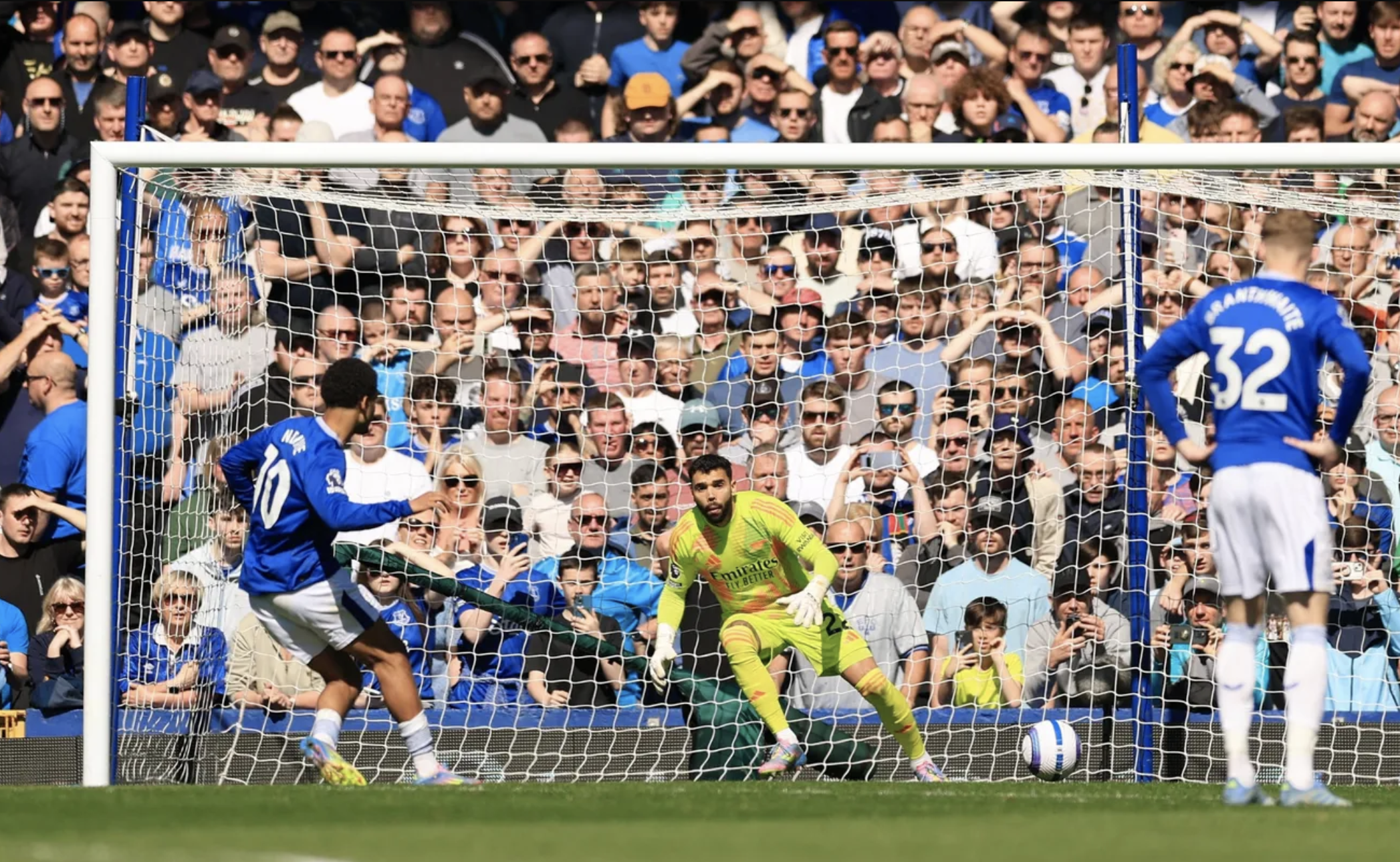 Phút 46, Lewis-Skelly trong tình huống tranh chấp bóng với Jack Harrison đã ngã ngay trong vòng cấm địa đội nhà, tay còn níu ngã tiền đạo của Everton. Trọng tài Darren England không ngần ngại chỉ tay vào chấm phạt đền và Iliman Ndiaye không khó để đánh bại thủ thành David Raya của Arsenal, cân bằng tỉ số 1-1.