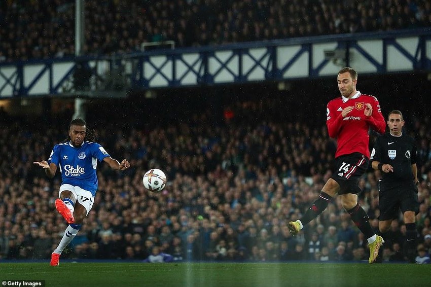 MU sau đó dồn ép Everton dữ dội và tạo ra hàng loạt tình huống ngon ăn. 15 phút sau, MU có bàn gỡ hòa tương tự như Everton. Gueye để mất bóng tạo điều kiện cho MU phản công, Martial có pha kiến tạo rất vừa tầm cho Antony bên cánh phải thoát xuống tung cú cứa lòng vào góc xa, thủ môn Pickford dù chạm tay vào được bóng nhưng không thể cứu thua. 1-1 cho MU.