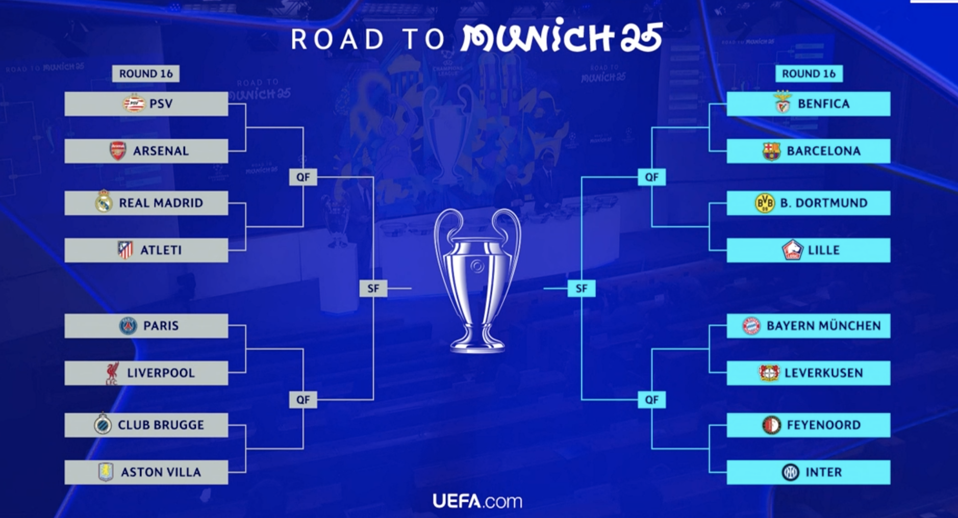 Lễ bốc thăm vòng 1/8 Champions League mùa bóng 2024-2025 diễn ra tối 21-2 tại trụ sở UEFA ở Nyon (Thụy Sĩ) được điều hành bởi Phó Tổng thư ký UEFA Giorgio Marchetti và khách mời Giovane Elber, cựu tiền đạo Bayern Munich và là nhà vô địch Champions League 2000-2001.