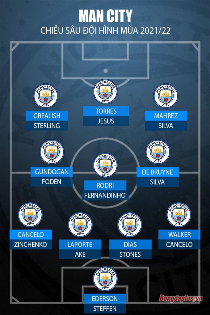 Man City đang là nhà ĐKVĐ Premier League với đội hình đã được hoàn thiện từ vài năm nay dưới bàn tay của Pep Guardiola. Trong kỳ chuyển nhượng Hè 2021, Man xanh chia tay Sergio Aguero nhưng không thể mang về Harry Kane để thay thế.