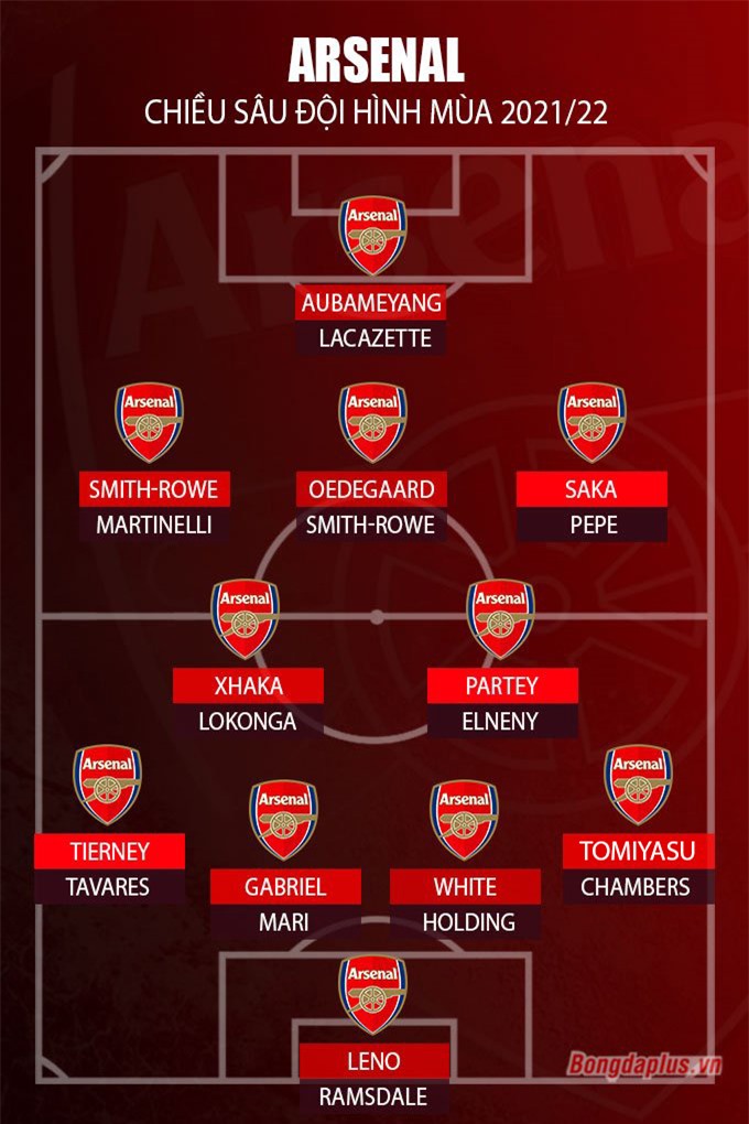Đội hình của Pháo thủ vẫn thiếu hụt ở nhiều vị trí từ trung vệ, tiền vệ trung tâm tới tiền đạo. Với khởi đầu tệ tại tại Premier League 2021/22 (thua cả 3 trận), HLV Mikel Arteta có thể sớm phải ra đi và Pháo thủ lại phải thay máu trong những kỳ chuyển nhượng tới.