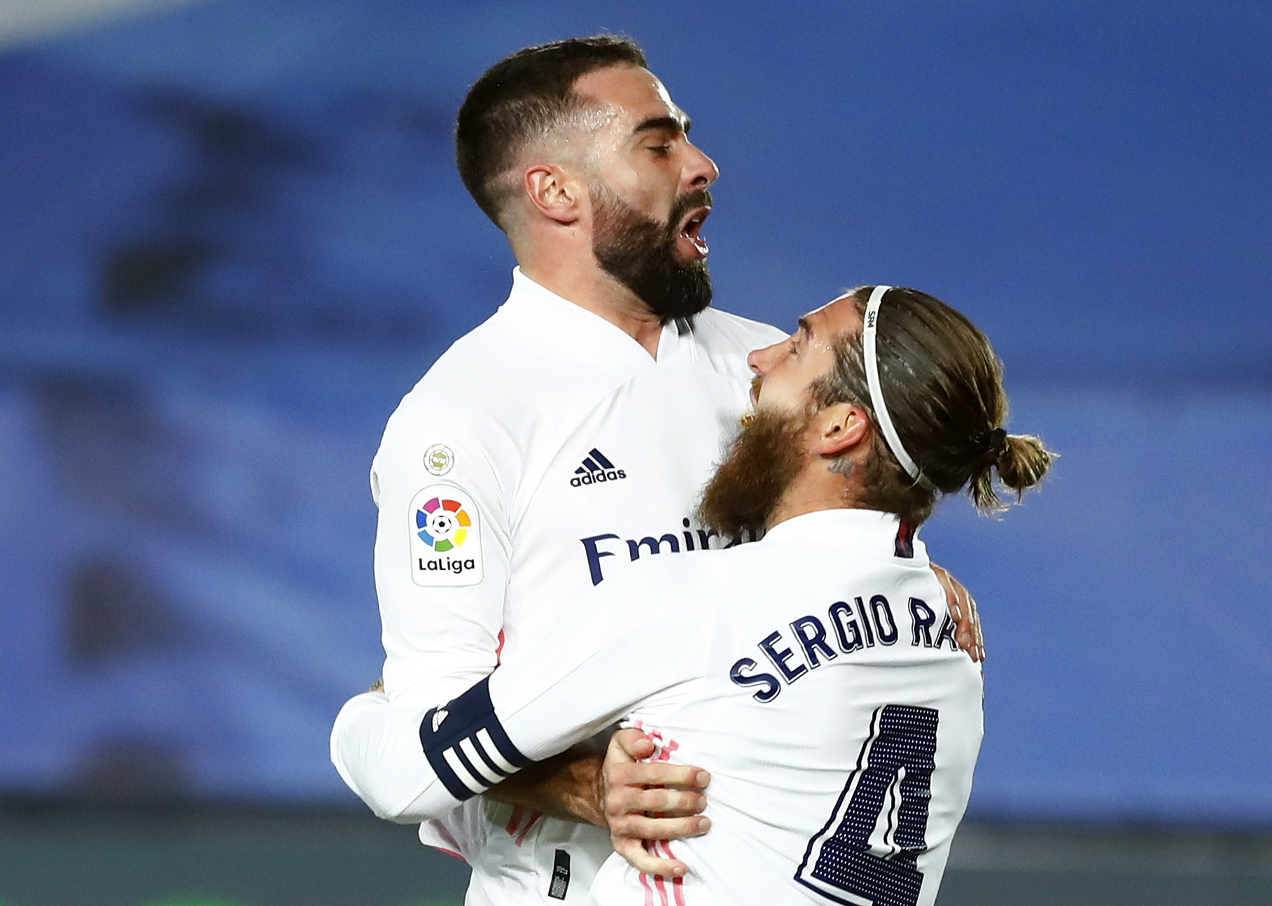 Dani Carvajal (trái) và đội trưởng Sergio Ramos ăn mừng sau khi nâng tỉ số lên 2-0 - Ảnh: Reuters
