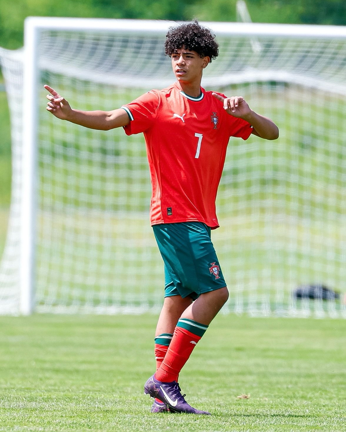 Cristiano Jr. hiện khoác áo đội trẻ của Al-Nassr tại Saudi Arabia, nơi ông bố đang thi đấu. 14 tuổi, con trai của Ronaldo được triệu tập U15 Bồ Đào Nha. Chiếc áo cầu thủ này mặc cũng quen thuộc, gắn liền với số áo và thương hiệu của người cha: CR7.