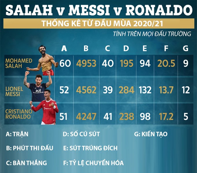 Salah, Messi, Ronaldo: Ai ghi bàn đỉnh nhất?